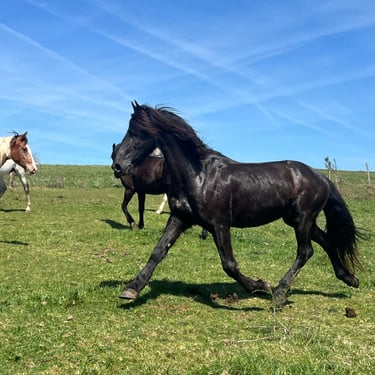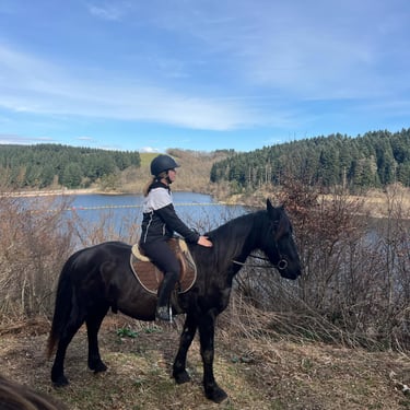 Pas usé car ne travaille régulièrement que depuis peu. Il randonne avec des cavaliers de tout niveaux, en groupe, à retravailler pour qu'il sorte seul. Vert en carrière mais volontaire. Pas sur l'œil, tempérament froid. Il est assez brut de décoffrage mais se montre très coopératif et respectueux avec les personnes qui ont gagné sa confiance. C'est le cheval d'une vie.