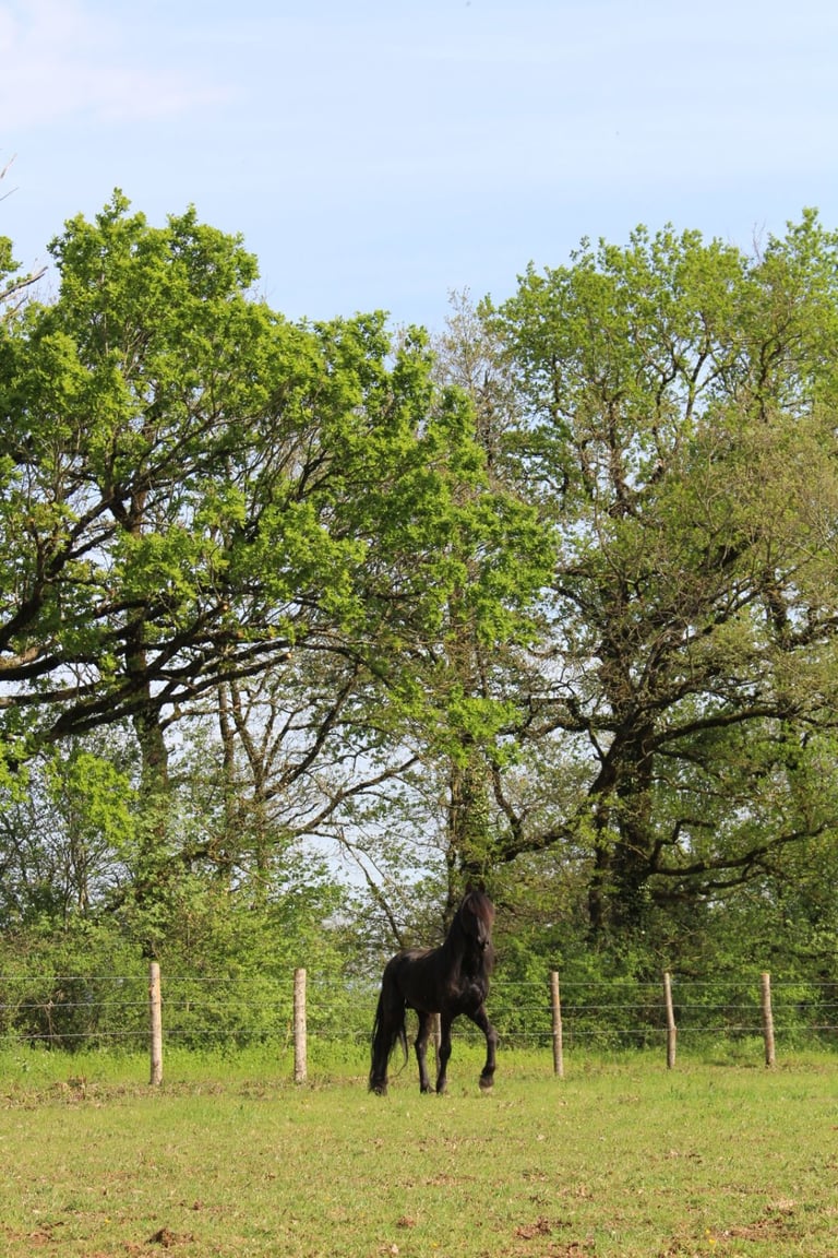 Il est en cours de rééducation et de remise en confiance avec l'humain et le cheval.