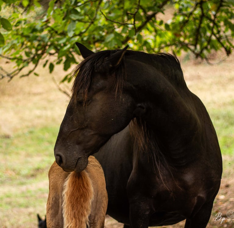 Notre doyenne, La Preferida est arrivée au Ranch en 2020, elle est l'une de nos premières juments d'élevage. Au-delà de son incommensurable gentillesse, c'est une jument qui a une force intérieure et une résilience qui forcent le respect. C'est notre "Madame". De son surnom "Sweety", elle charme chaque personne qui prend le temps de la connaître. Au travail elle pousse à l'introspection et adore pousser son interlocuteur à la réflexion. Avec elle tout est acquis mais on peut toujours aller plus loin et toujours mieux faire, c'est une excellente pédagogue tant pour les humains que pour les poulains qu'elle élève avec tendresse et justesse. Elle produit des poulains très proches de l'homme, téméraires et curieux.